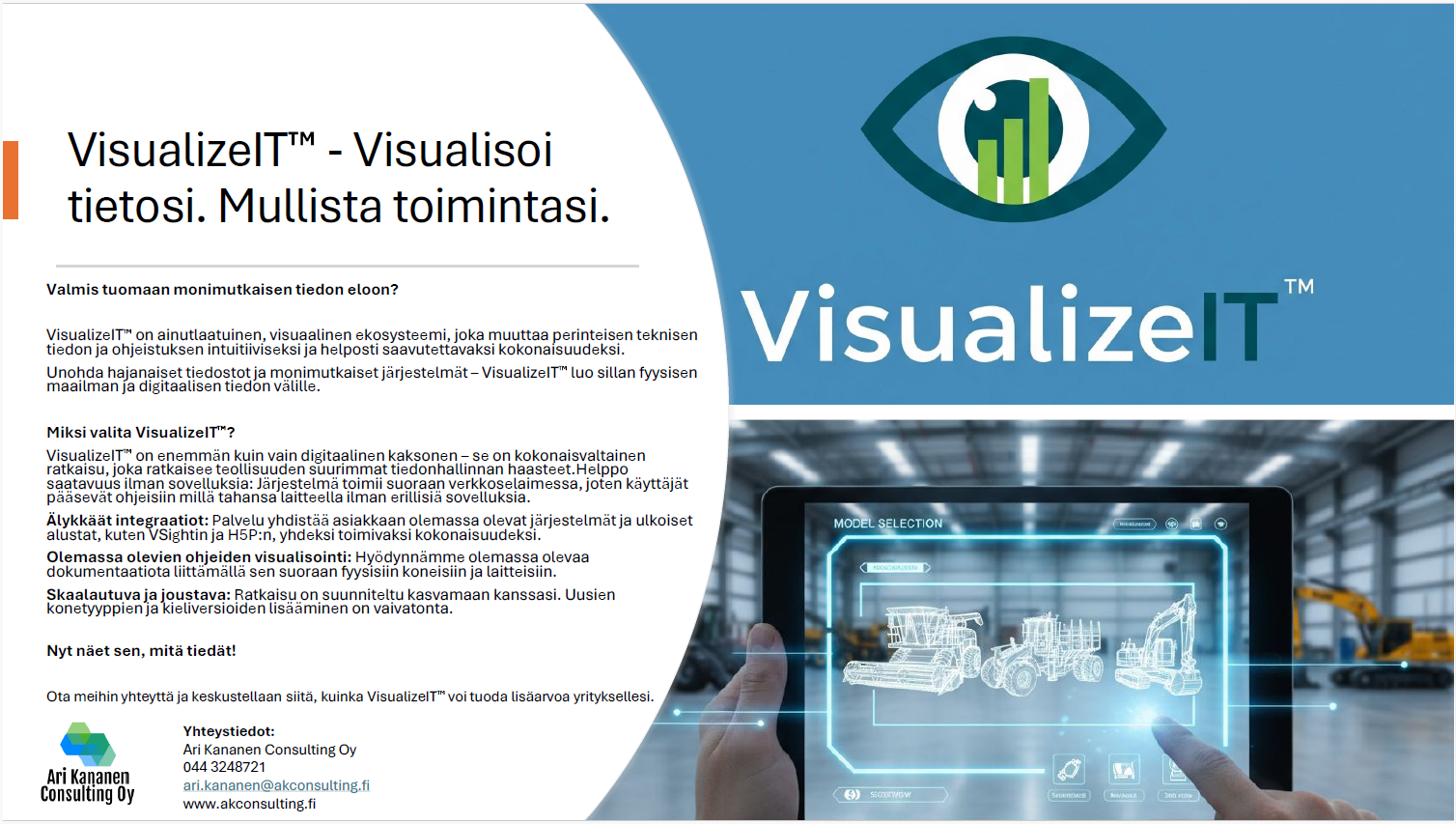 Olitpa kehittämässä perehdytystä, koulutusta, viestintää tai työn ohjausta, saat meiltä asiantuntevaa apua suunnittelusta toteutukseen. Hyödynnämme mm. digitaalisia kaksosia, vuorovaikutteista mediaa ja etäyhteystyökaluja, jotka skaalautuvat sinun tarpeisiisi.